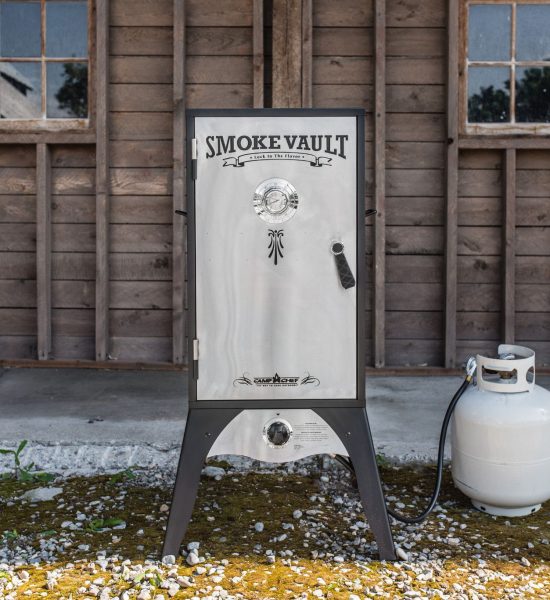 Lock the delicious smoked flavor of mesquite, hickory, cherry, and more into your meats with the Smoke Vault 18". This simple smoker cooks your meat low and slow with a heavy-gauge steel wood chip tray and water pan to infuse it with a delicious flavor you can't get any other way. Use the Smoke Vault for a variety of foods from ribs to a whole turkey or even baked pies. Fully adjustable heat-control dials, three damper valves, and a door thermometer will help you control internal temperatures throughout the cooking process. Cooking temperatures can vary from 160° F to 350° F. We'll throw in some cooking tips, ideas, and recipes with your purchase to help you get on your way as a master outdoor chef. Lock in your Smoke Vault purchase today.